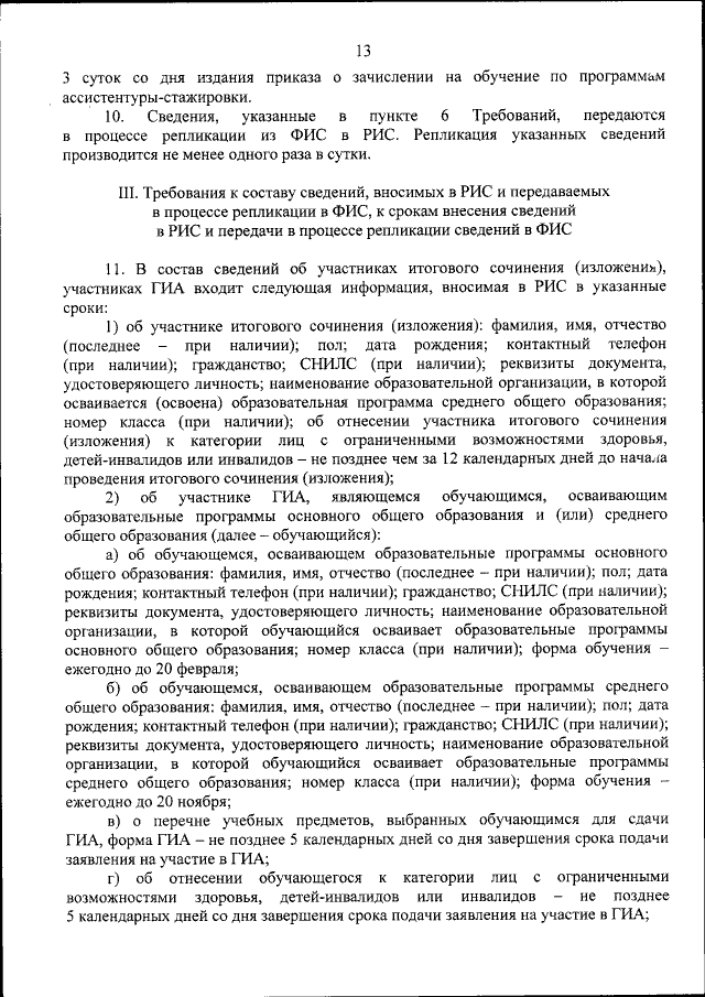 "Об установлении требований к составу и формату сведений, вносимых и передаваемых в процессе репликации в федеральную информационную систему обеспечения проведения государственной итоговой аттестации обучающихся, освоивших основные образовательные программы основного общего и среднего общего образования, и приема граждан в образовательные организации для получения среднего профессионального и высшего образования и региональные информационные системы обеспечения проведения государственной итоговой аттестации обучающихся, освоивших основные образовательные программы основного общего и среднего общего образования, а также к срокам внесения и передачи в процессе репликации сведений в указанные информационные системы"