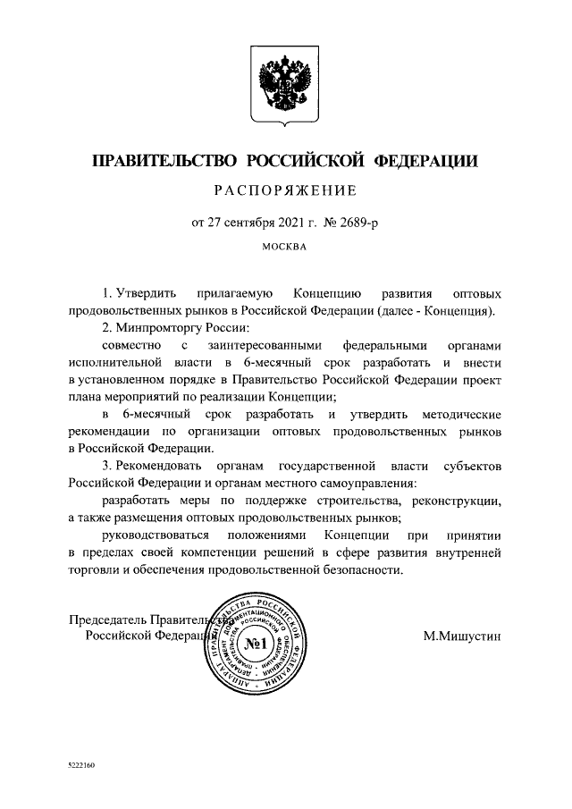 Распоряжение Правительства Российской Федерации от 27.09.2021 № 2689-р