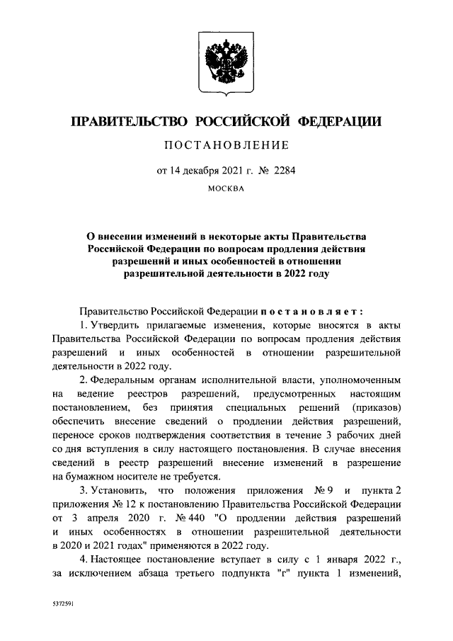 Постановление Правительства Российской Федерации от 14.12.2021 № 2284