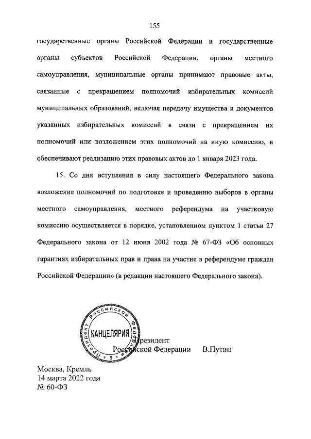 Федеральный закон от 14.03.2022 № 60-ФЗ