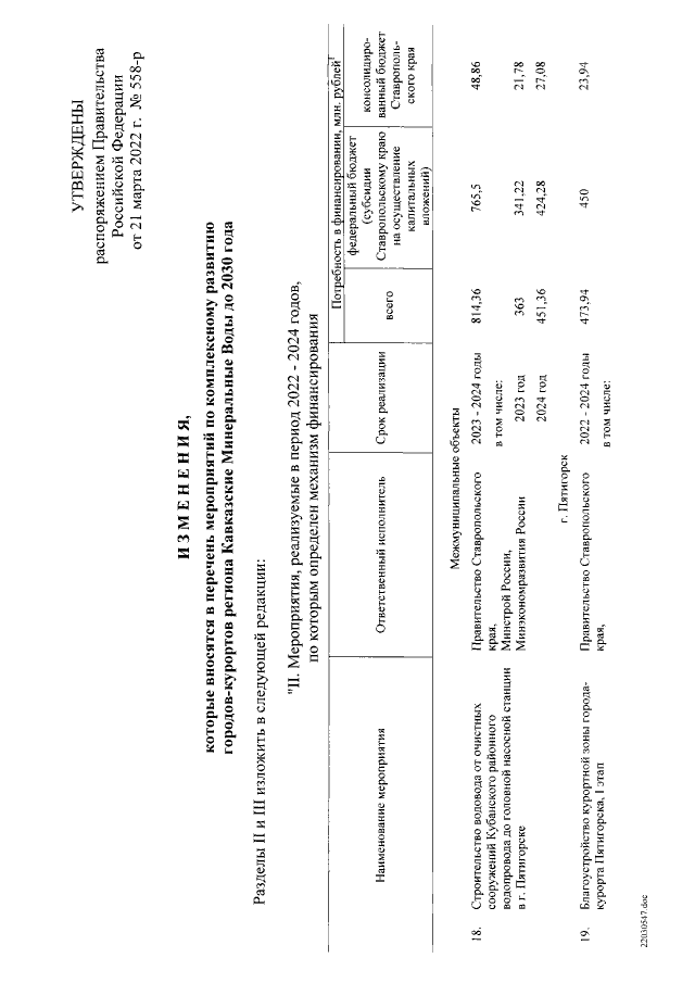 Распоряжение Правительства Российской Федерации от 21.03.2022 № 558-р