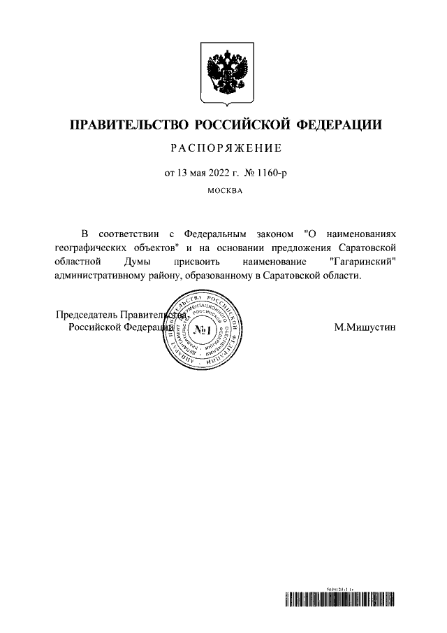 Распоряжение Правительства Российской Федерации от 13.05.2022 № 1160-р