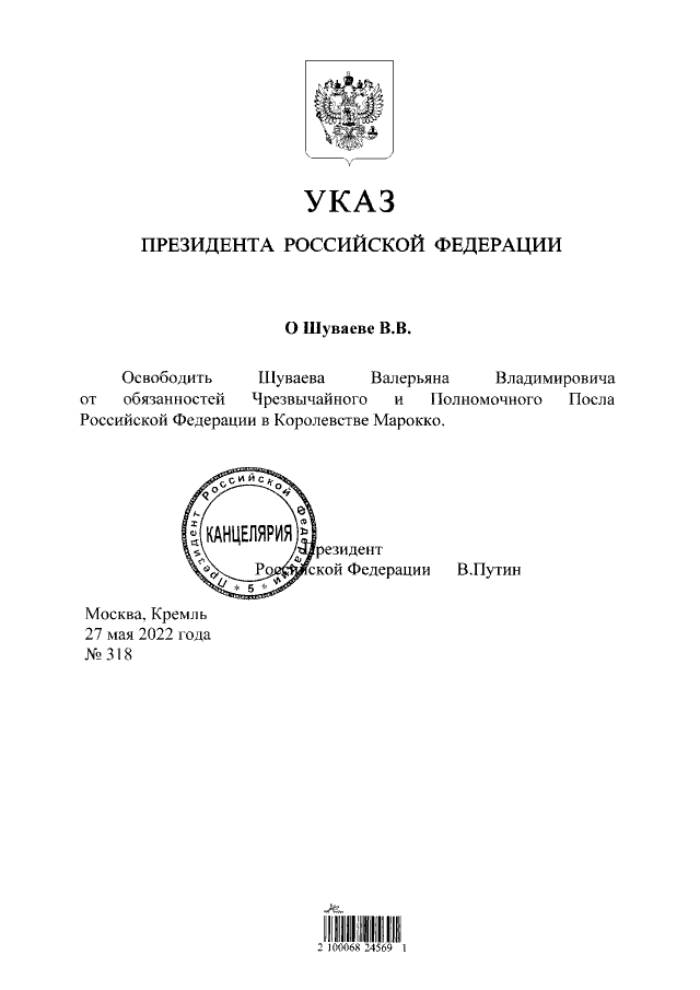 Указ Президента Российской Федерации от 27.05.2022 № 318