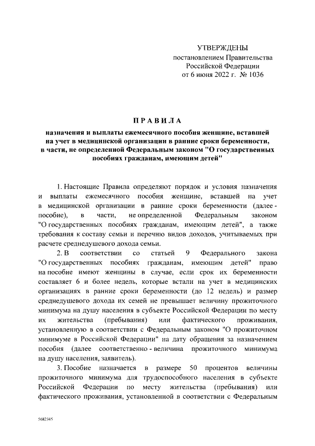 "Об утверждении Правил назначения и выплаты ежемесячного пособия женщине, вставшей на учет в медицинской организации в ранние сроки беременности, в части, не определенной Федеральным законом "О государственных пособиях гражданам, имеющим детей", перечня документов (копий документов, сведений), необходимых для назначения пособия, и формы заявления о назначении пособия, а также о признании утратившими силу постановления Правительства Российской Федерации от 28 июня 2021 г. № 1037 и отдельных положений некоторых актов Правительства Российской Федерации"