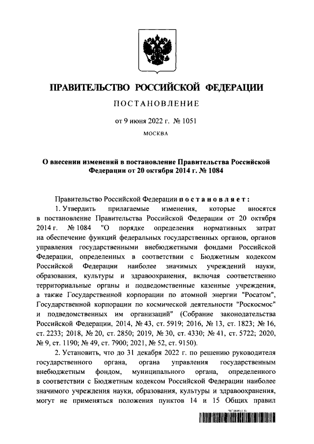 Постановление Правительства Российской Федерации от 09.06.2022 № 1051