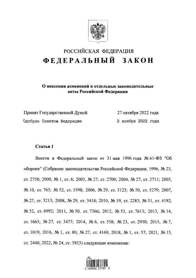 Федеральный закон от 04.11.2022 № 419-ФЗ