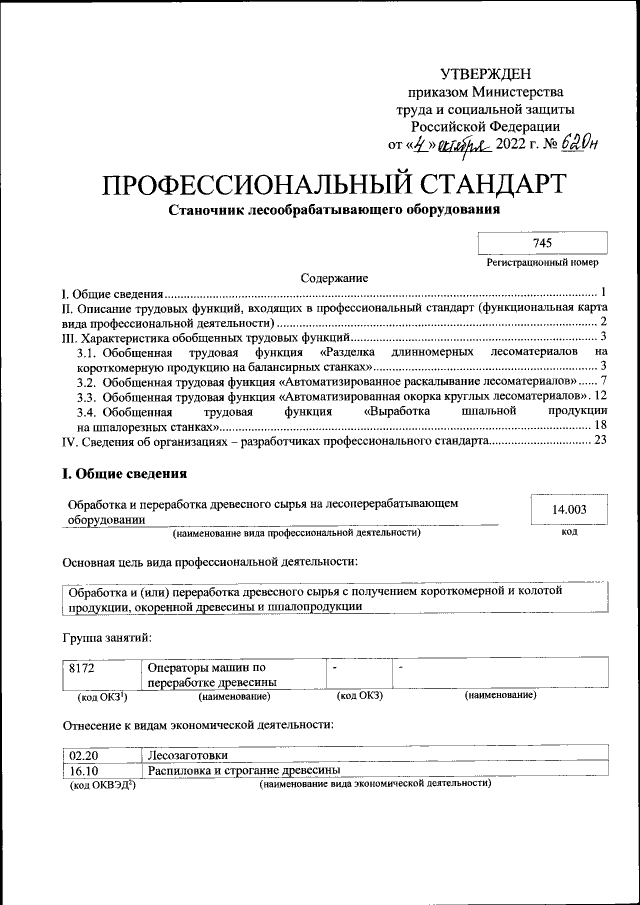 "Об утверждении профессионального стандарта "Станочник лесообрабатывающего оборудования"