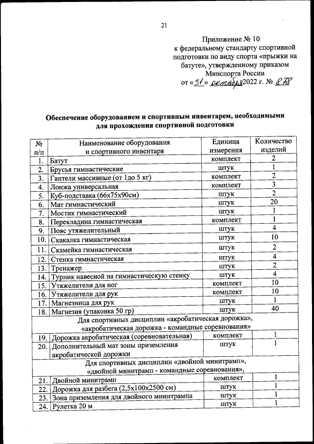 Приказ Министерства спорта Российской Федерации от 31.10.2022 № 878