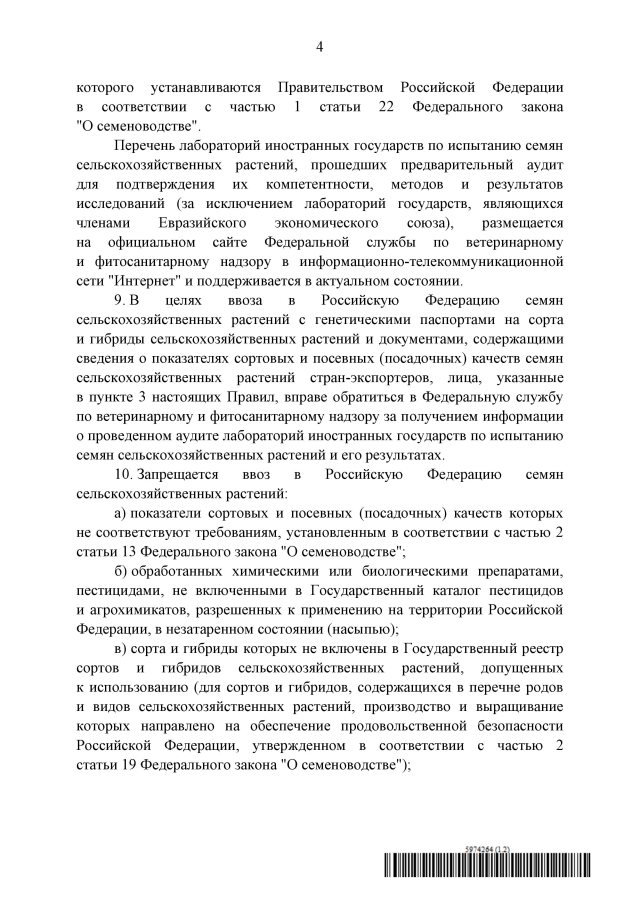 "Об утверждении Правил ввоза в Российскую Федерацию и вывоза из Российской Федерации семян сельскохозяйственных растений"