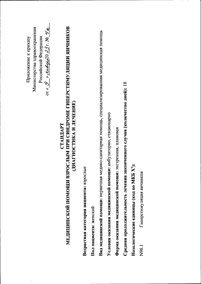 "Об утверждении стандарта медицинской помощи взрослым при синдроме гиперстимуляции яичников (диагностика и лечение)"