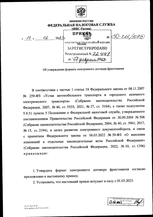 Приказ Федеральной налоговой службы от 13.02.2023 № ЕД-7-26/109@