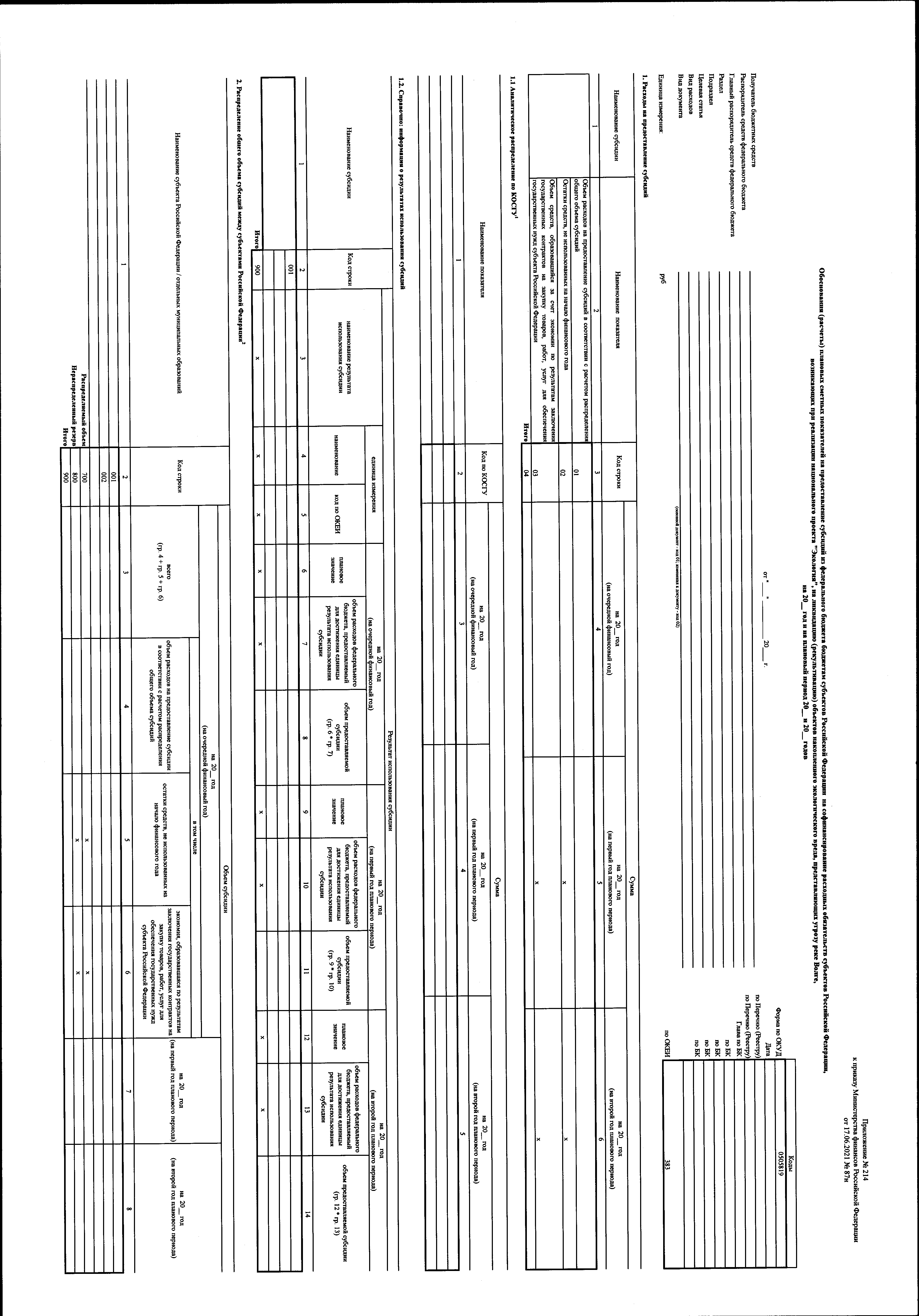 "О внесении изменений в приказ Министерства финансов Российской Федерации от 17 июня 2021 г. № 87н "Об утверждении форм обоснований (расчетов) плановых сметных показателей, применяемых при составлении и ведении бюджетных смет федеральных казенных учреждений"