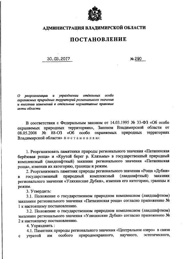 Постановление администрации Владимирской области от 30.03.2017 № 290