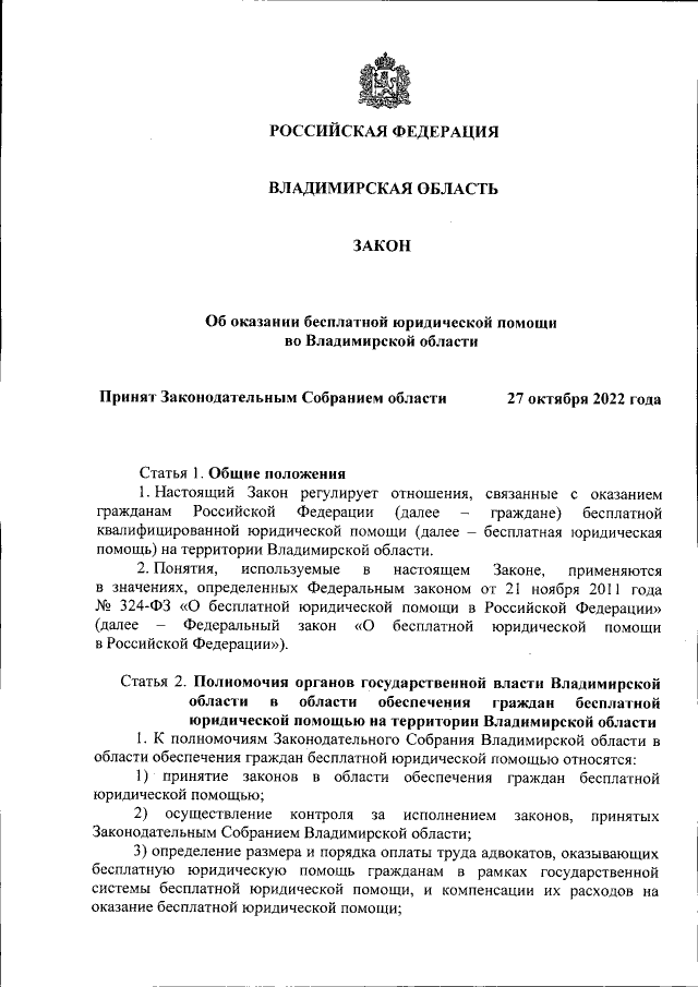 Закон Владимирской области от 02.11.2022 № 96-ОЗ