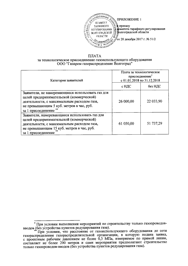 "Об установлении платы за технологическое присоединение газоиспользующего оборудования к газораспределительным сетям ООО "Газпром газораспределение Волгоград" на 2018 год"