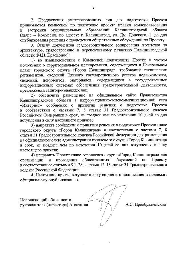 Приказ Агентства по архитектуре, градостроению и перспективному развитию Калининградской области от 31.07.2020 № 303