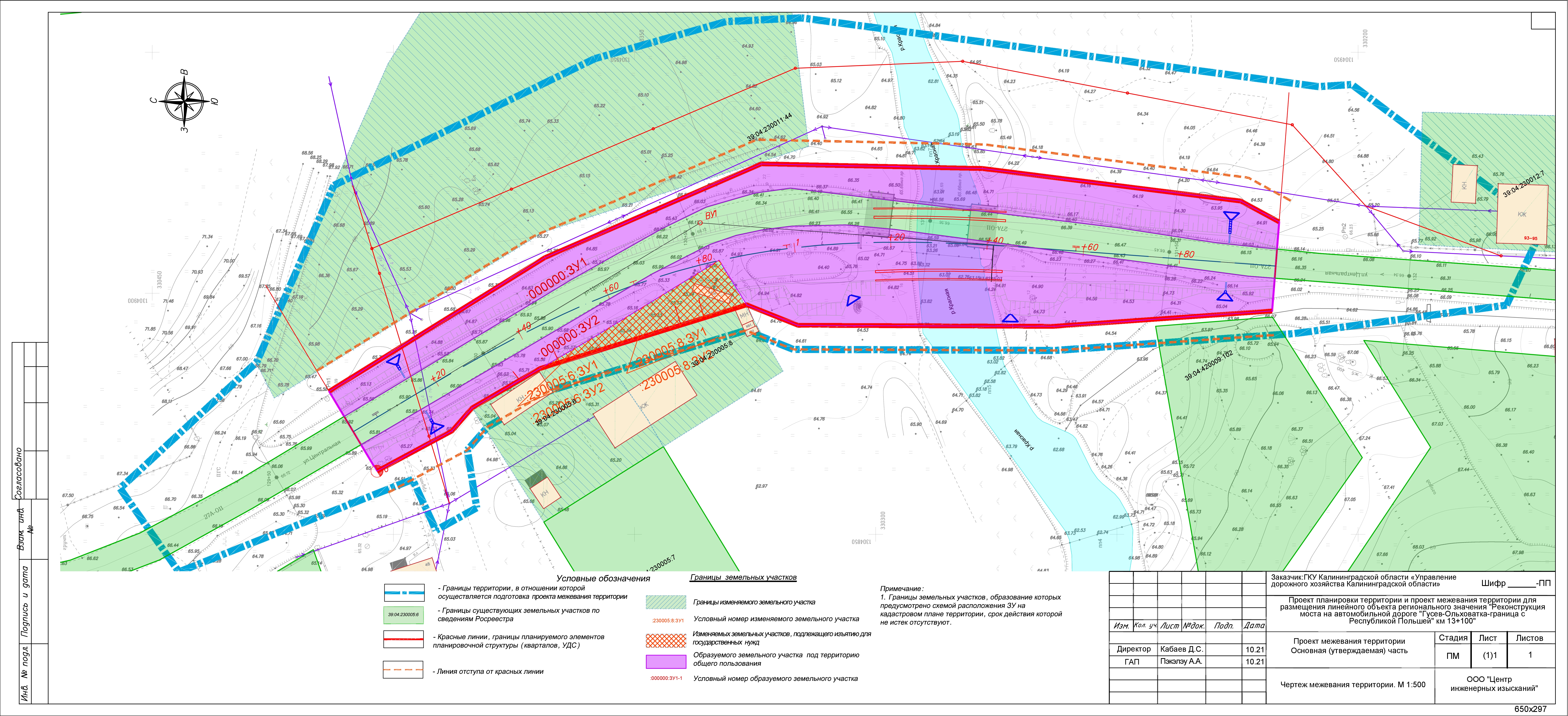 "Об утверждении проекта планировки территории с проектом межевания в его составе для размещения линейного объекта регионального значения "Реконструкция моста на автомобильной дороге "Гусев-Ольховатка- граница с Республикой Польшей" км 13+100"