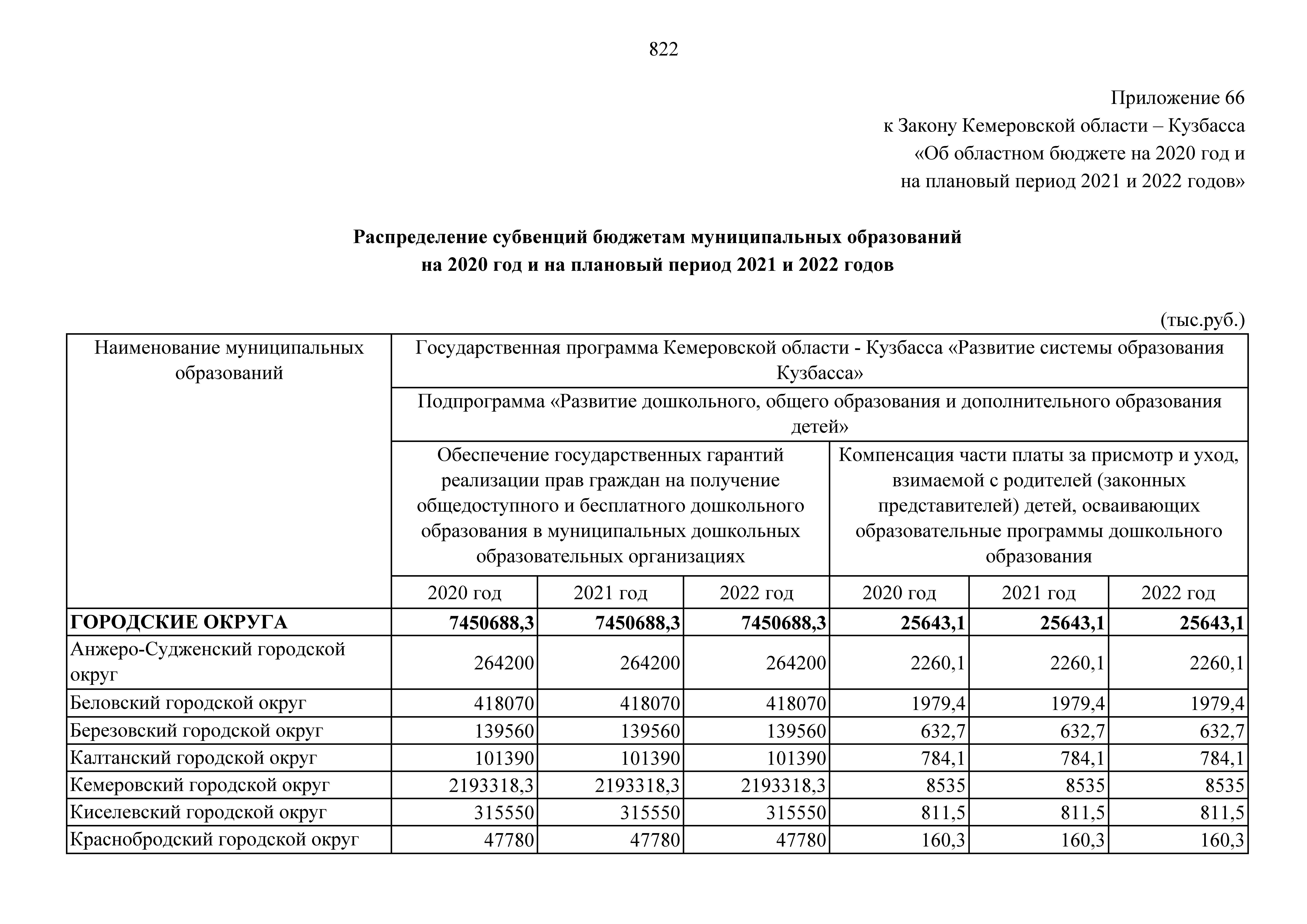 "Об областном бюджете на 2020 год и на плановый период 2021 и 2022 годов"