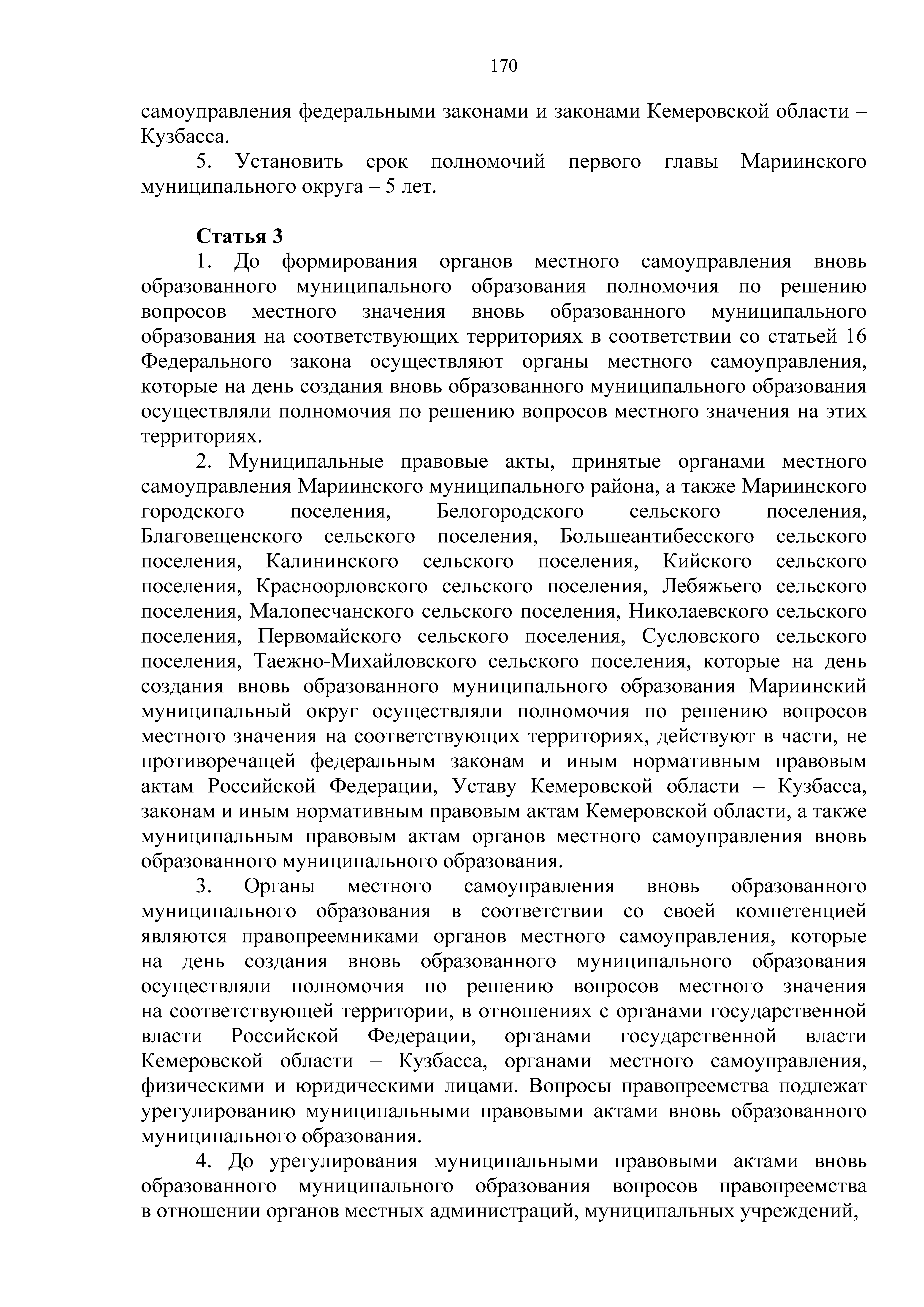 Закон Кемеровской области - Кузбасса от 08.12.2020 № 140-ОЗ "О преобразовании муниципальных образований, входящих в состав Мариинского муниципального района"