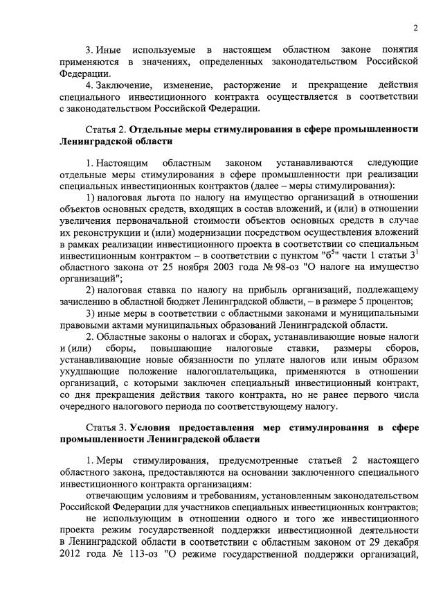 "Об отдельных мерах стимулирования в сфере промышленности Ленинградской области и о внесении изменений в отдельные законодательные акты Ленинградской области"