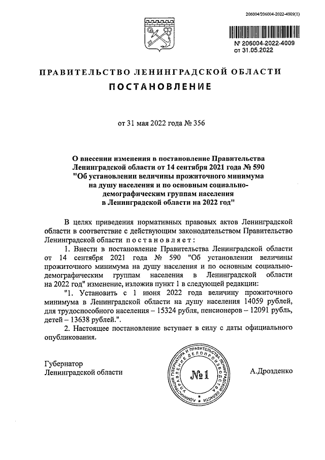 Постановление Правительства Ленинградской области от 31.05.2022 № 356