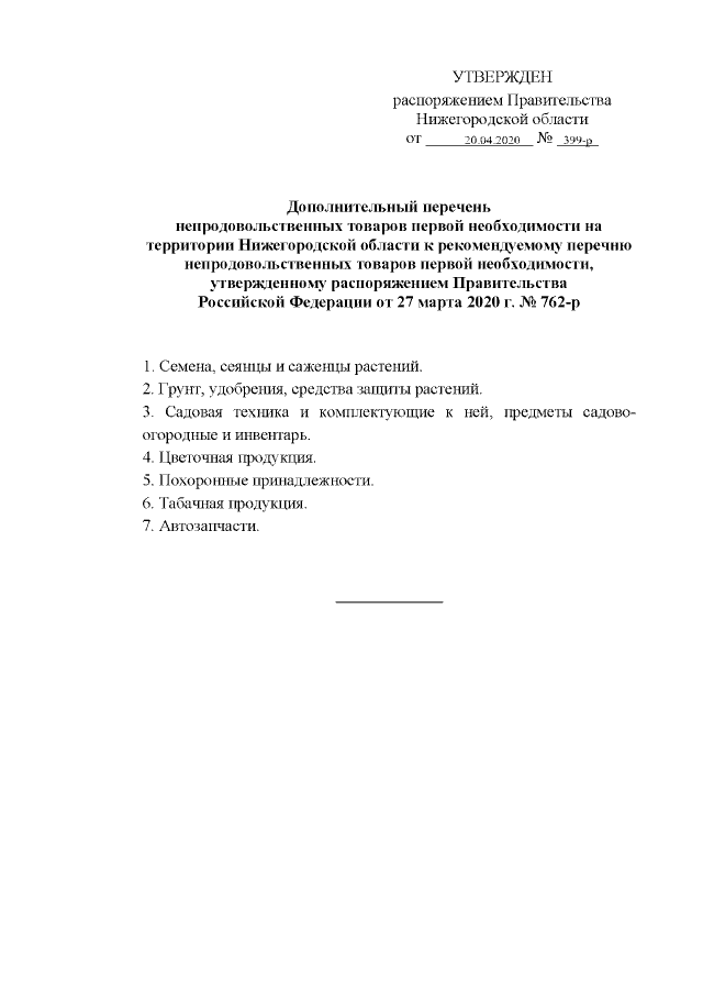 Распоряжение Правительства Нижегородской области от 20.04.2020 № 399-р