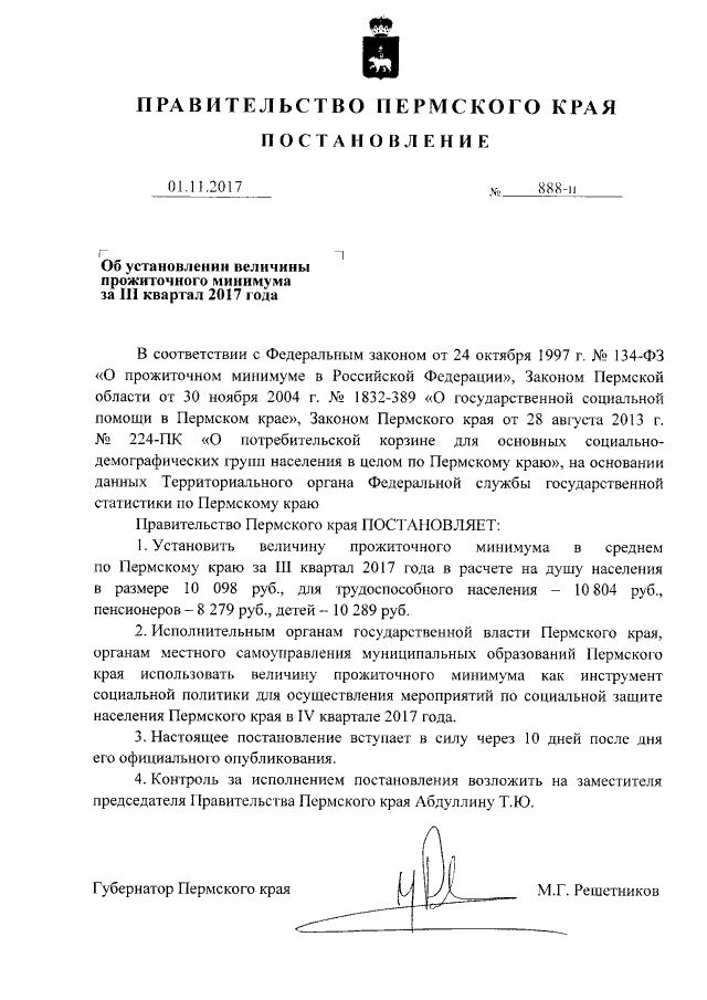 Постановление Правительства Пермского края от 01.11.2017 № 888-п