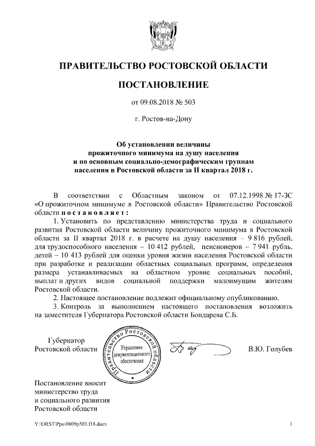 Постановление Правительства Ростовской области от 09.08.2018 № 503