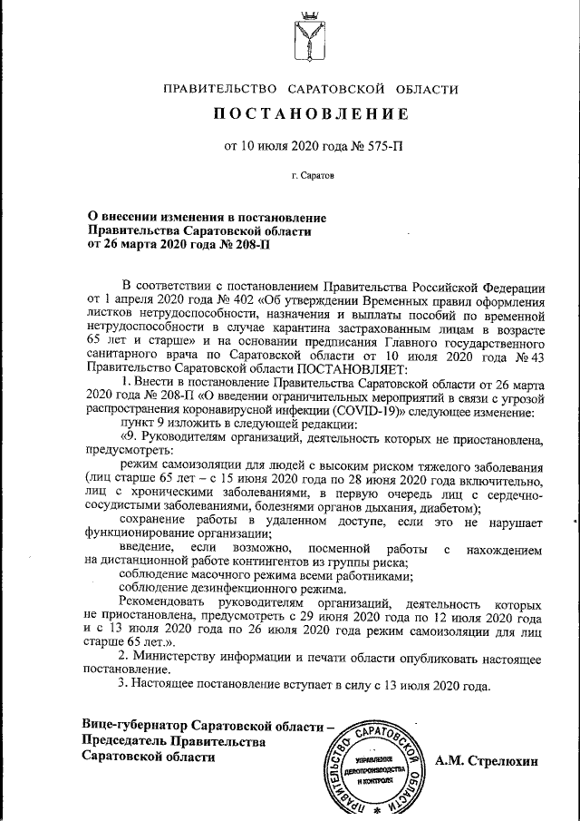 Постановление Правительства Саратовской области от 10.07.2020 № 575-П