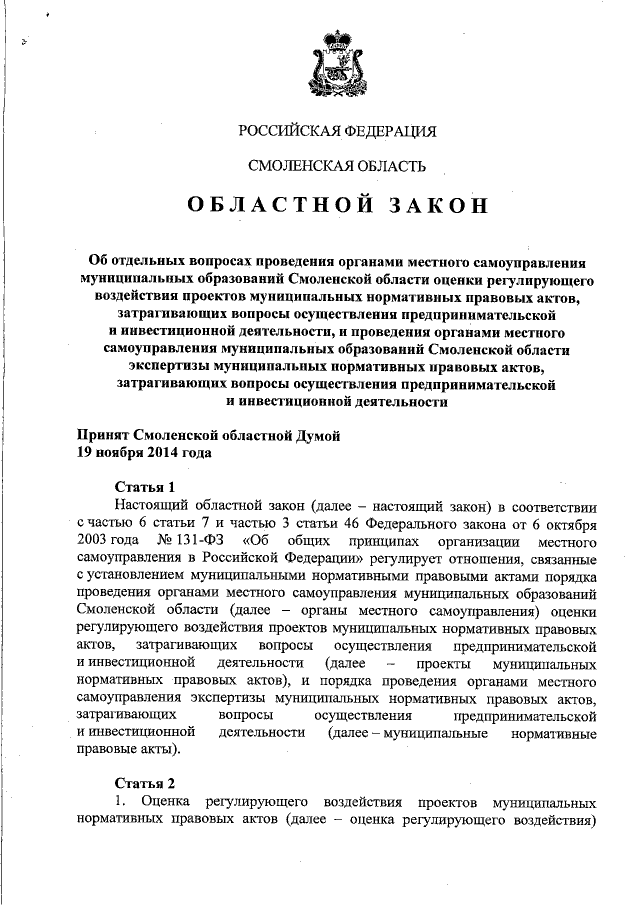 Закон Смоленской области от 19.11.2014 № 156-з