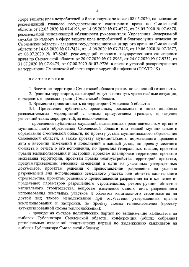 Указ Губернатора Смоленской области от 07.08.2020 № 98