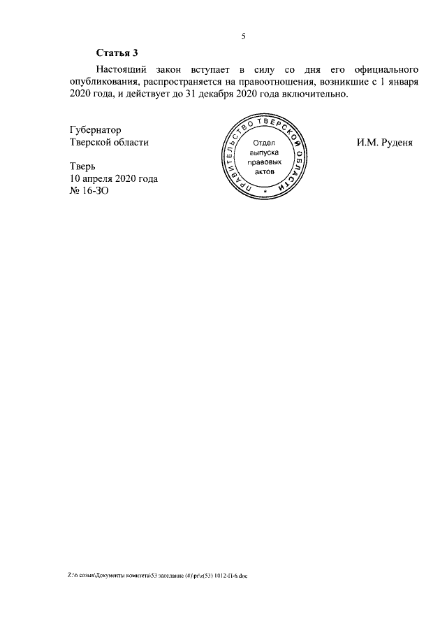 Закон Тверской области от 10.04.2020 № 16-ЗО