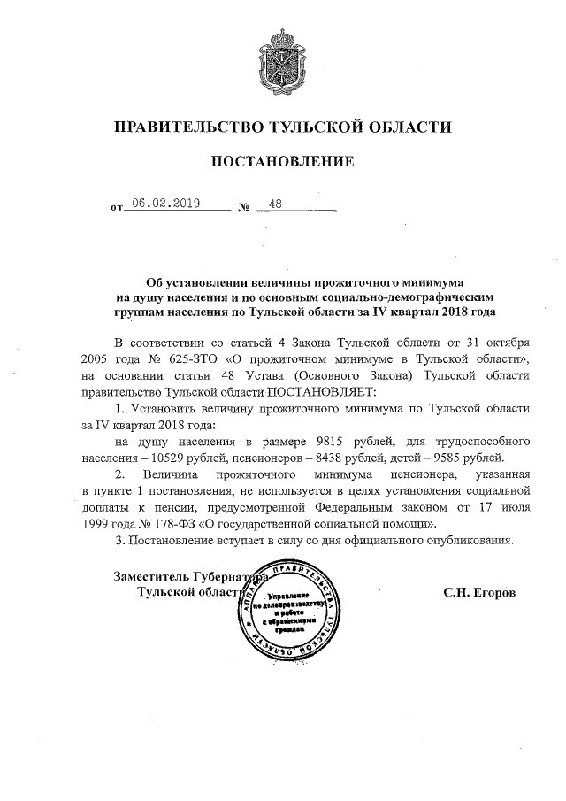 Постановление Правительства Тульской области от 06.02.2019 № 48