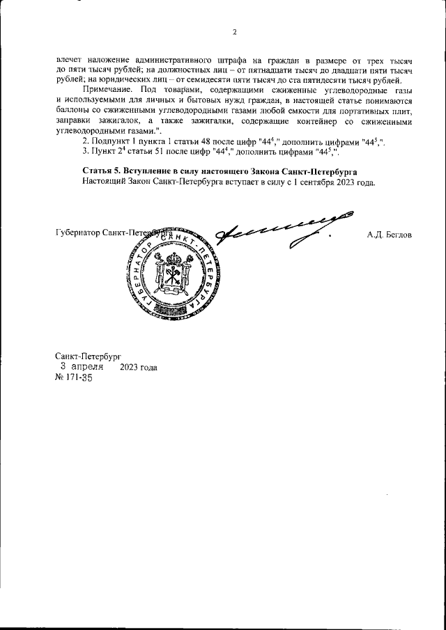 Закон Санкт-Петербурга от 03.04.2023 № 171-35