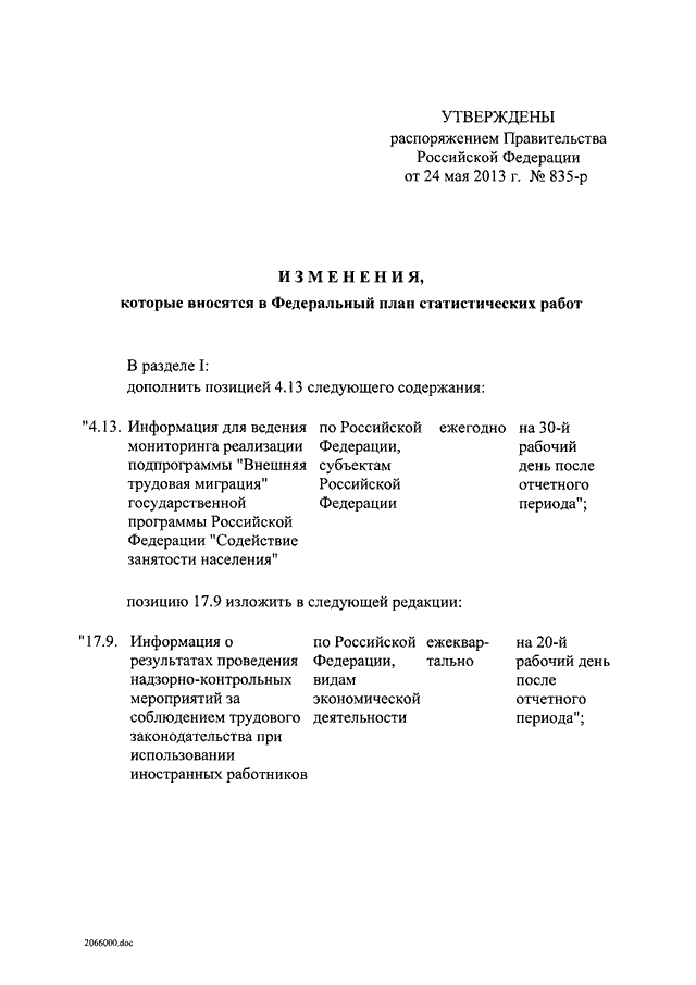 Распоряжение Правительства Российской Федерации от 24.05.2013 № 835-р