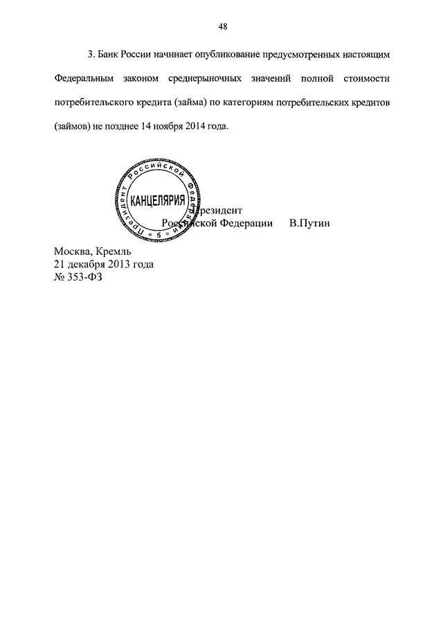 Федеральный закон от 21.12.2013 № 353-ФЗ