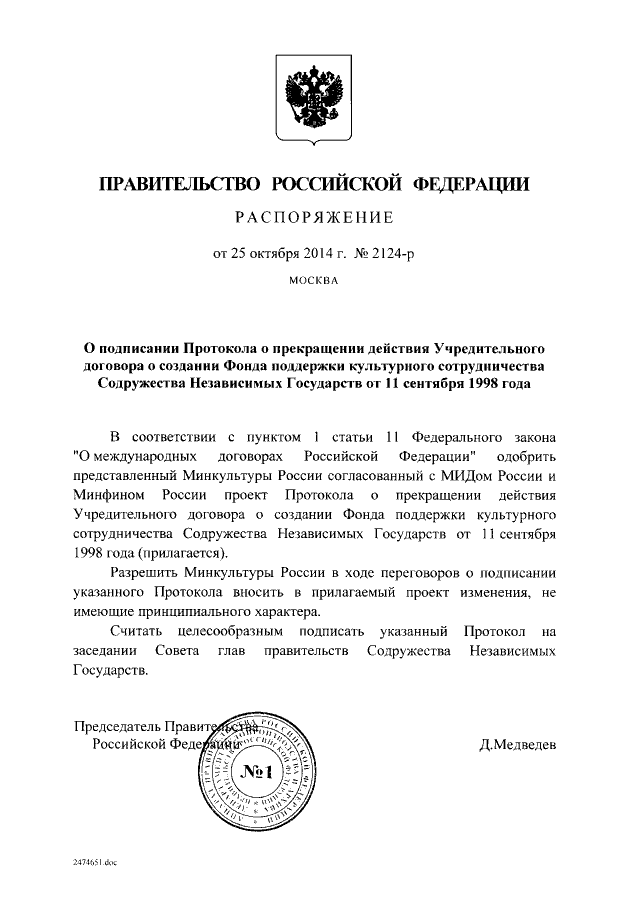 Распоряжение Правительства Российской Федерации от 25.10.2014 № 2124-р