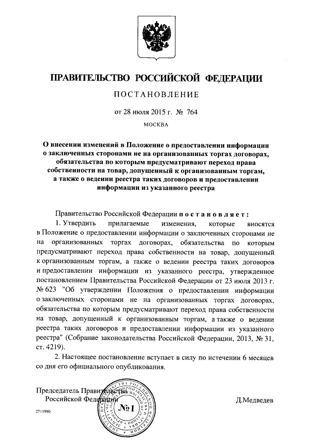 Постановление Правительства Российской Федерации от 28.07.2015 № 764