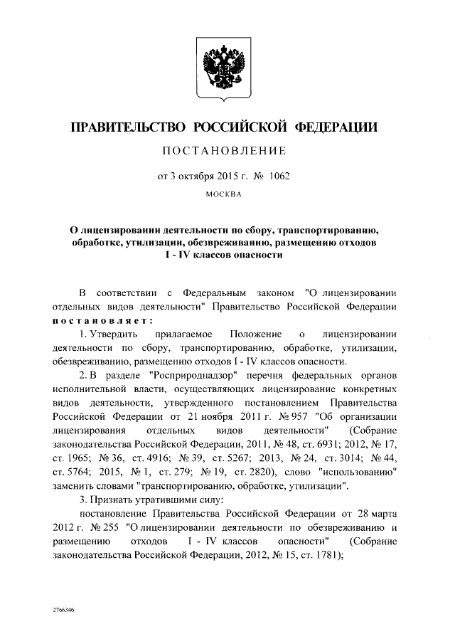Постановление Правительства Российской Федерации от 03.10.2015 № 1062