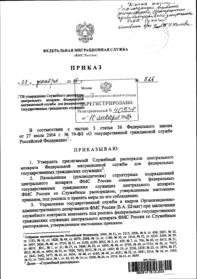 Приказ Федеральной миграционной службы от 08.12.2015 № 526