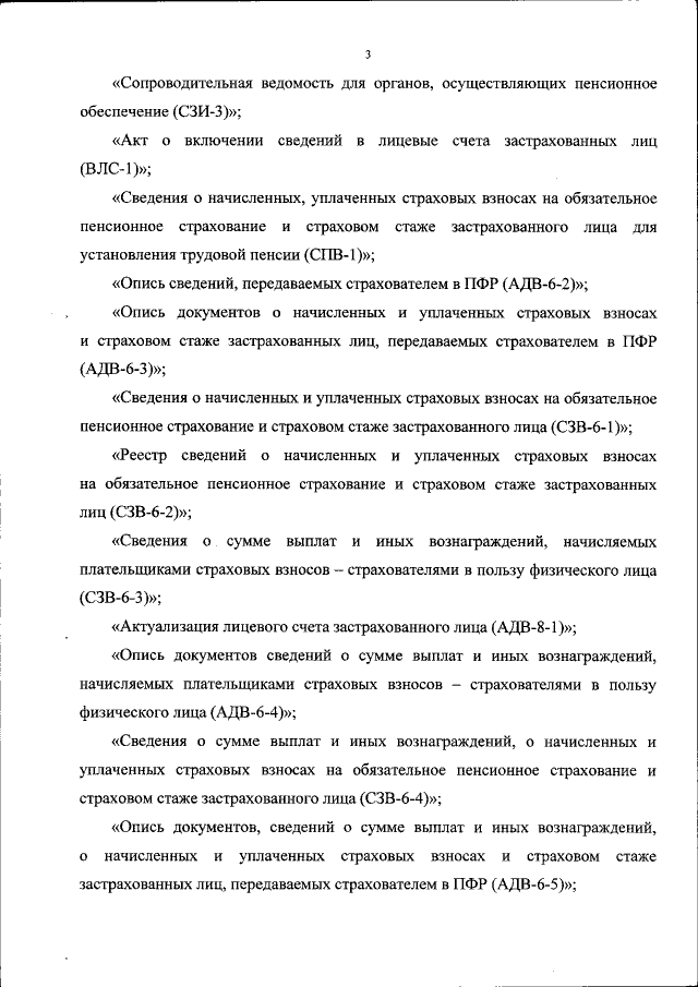 "О формах документов индивидуального (персонифицированного) учета в системе обязательного пенсионного страхования и Инструкции по их заполнению"