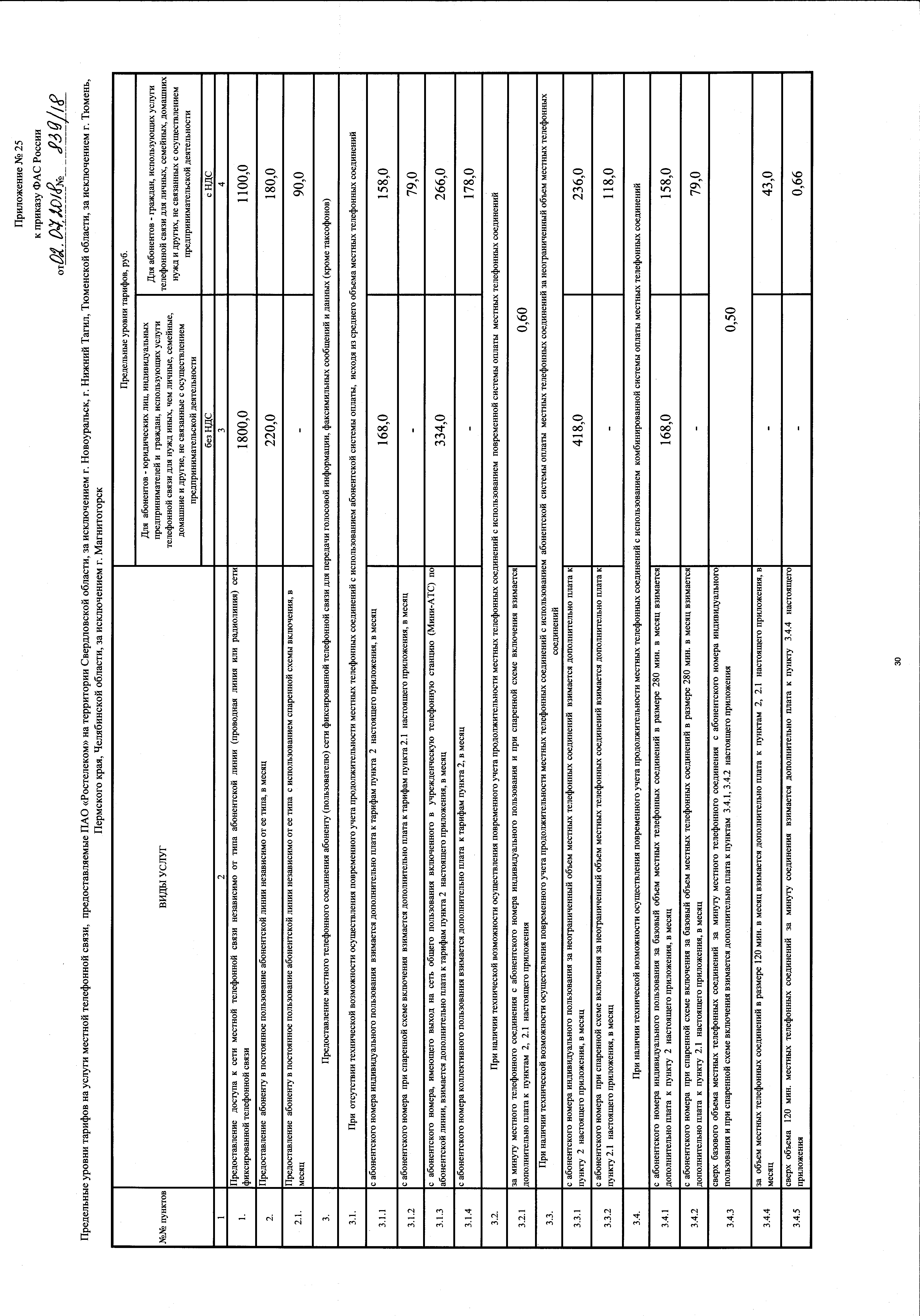 "Об утверждении тарифов на услуги местной, внутризоновой телефонной связи, на услугу по передаче внутренней телеграммы, предоставляемые ПАО "Ростелеком"
