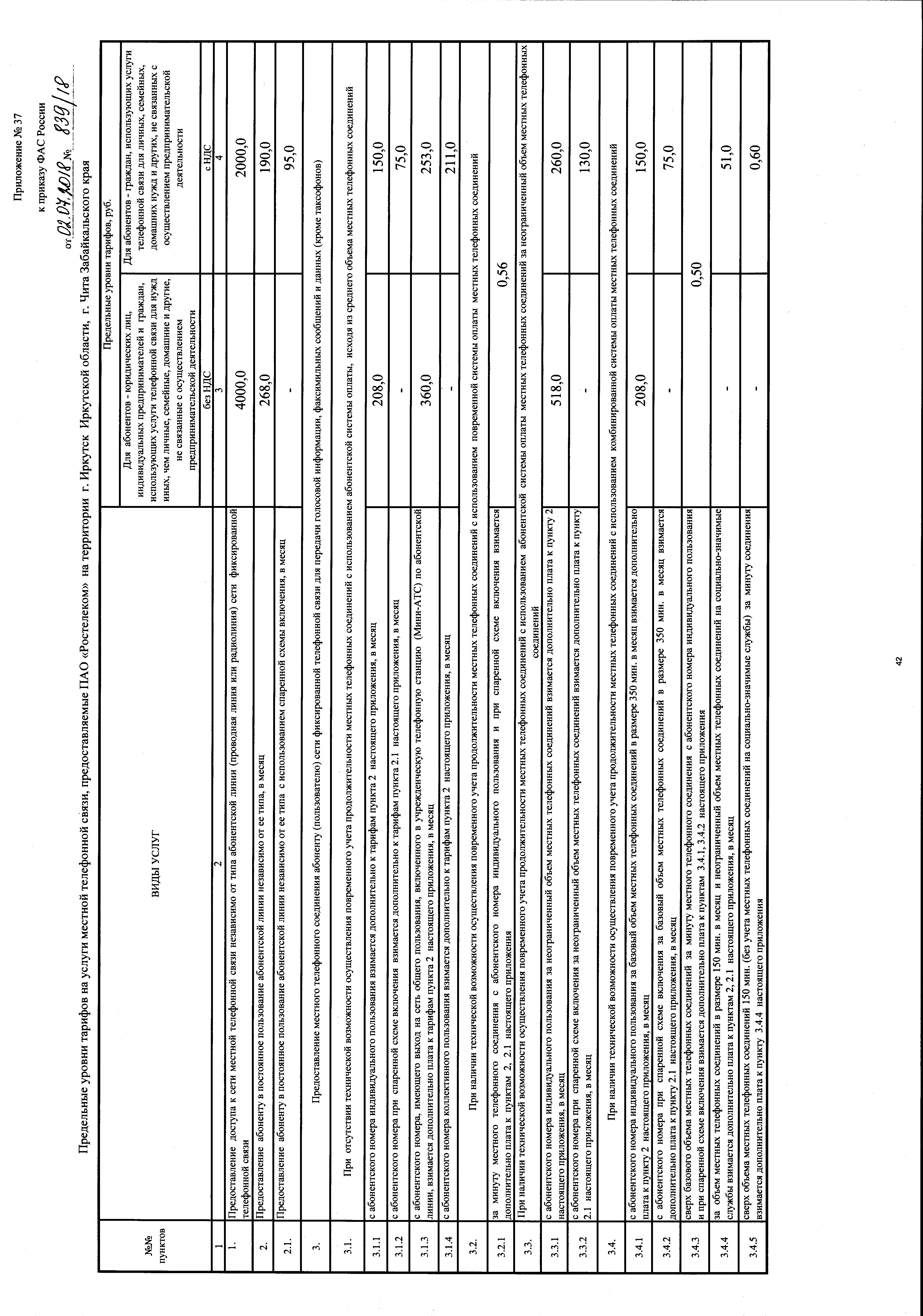 "Об утверждении тарифов на услуги местной, внутризоновой телефонной связи, на услугу по передаче внутренней телеграммы, предоставляемые ПАО "Ростелеком"