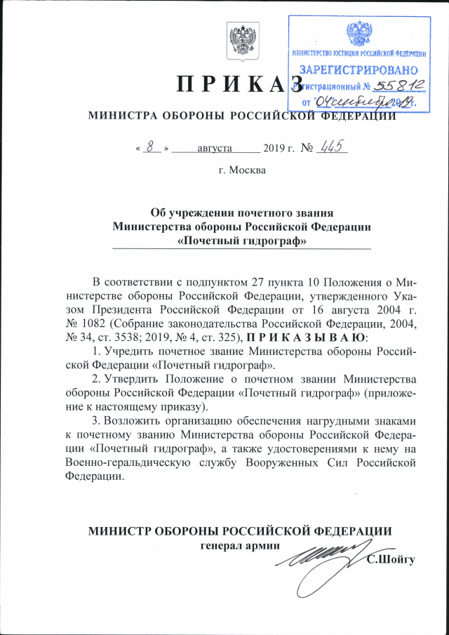 Приказ Министра обороны Российской Федерации от 08.08.2019 № 445