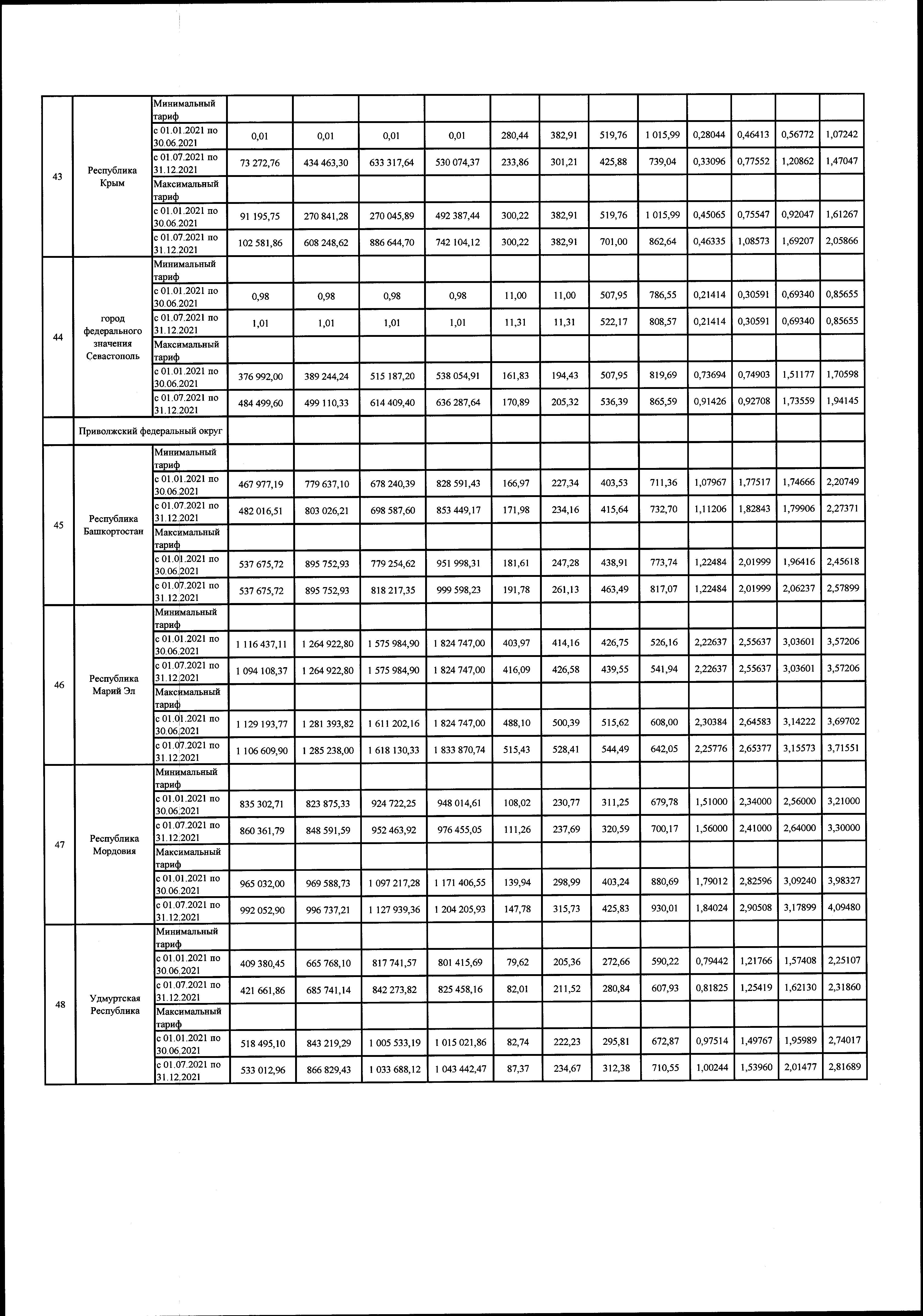 "Об утверждении предельных минимальных и максимальных уровней тарифов на услуги по передаче электрической энергии, оказываемые потребителям, не относящимся к населению и приравненным к нему категориям потребителей, по субъектам Российской Федерации на 2021 год"