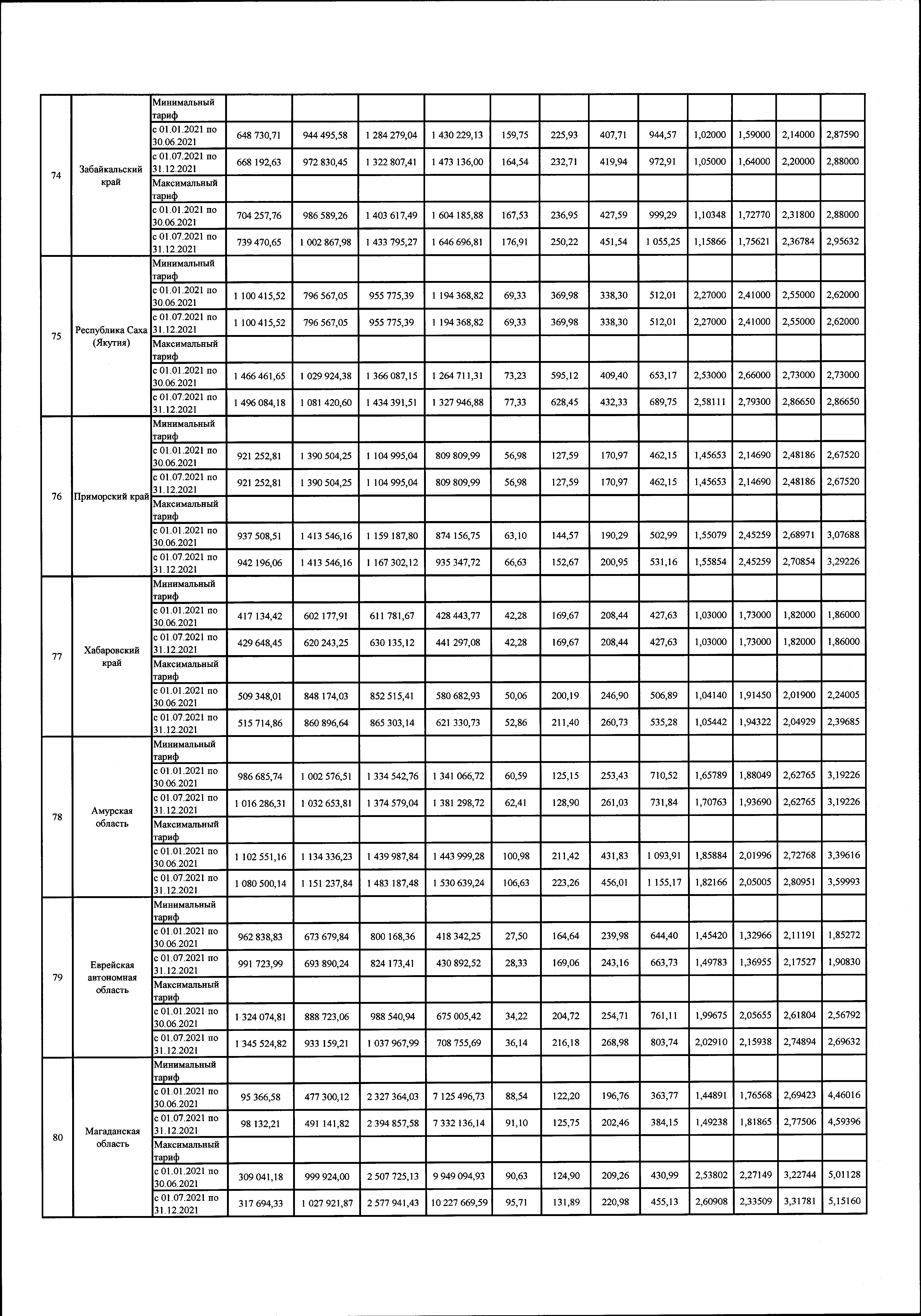 "Об утверждении предельных минимальных и максимальных уровней тарифов на услуги по передаче электрической энергии, оказываемые потребителям, не относящимся к населению и приравненным к нему категориям потребителей, по субъектам Российской Федерации на 2021 год"