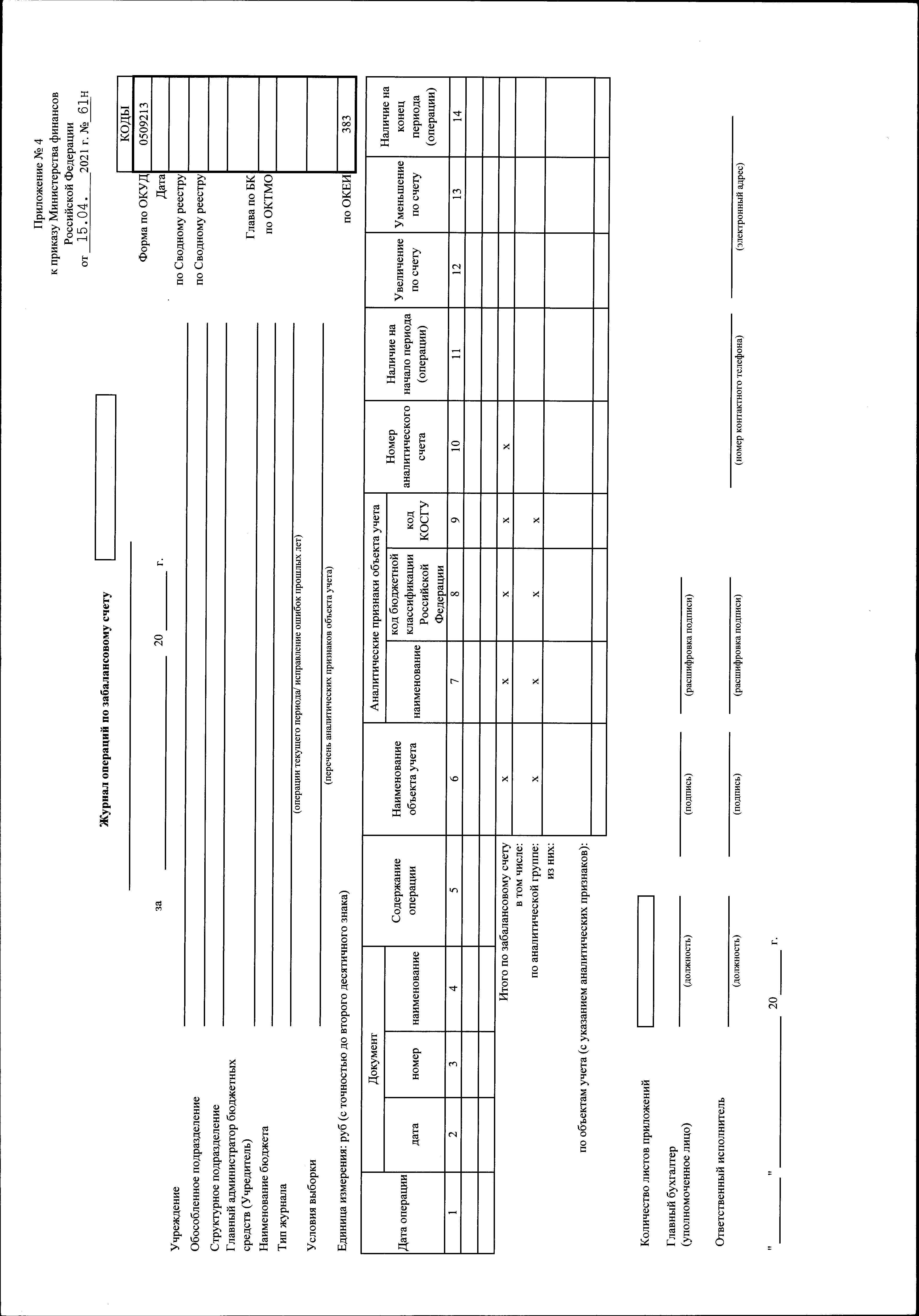 Приказ Министерства финансов Российской Федерации от 15.04.2021 № 61н