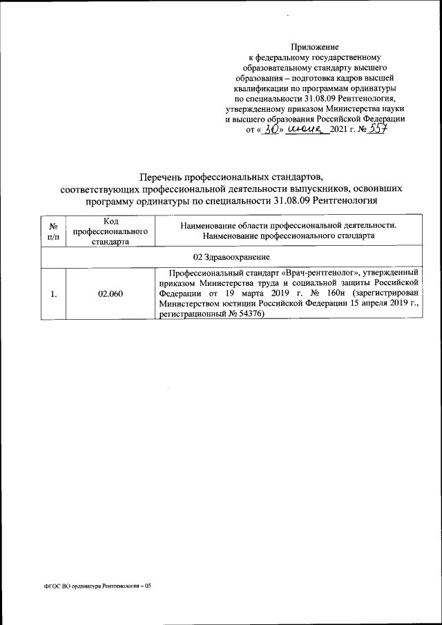 "Об утверждении федерального государственного образовательного стандарта высшего образования - подготовка кадров высшей квалификации по программам ординатуры по специальности 31.08.09 Рентгенология"