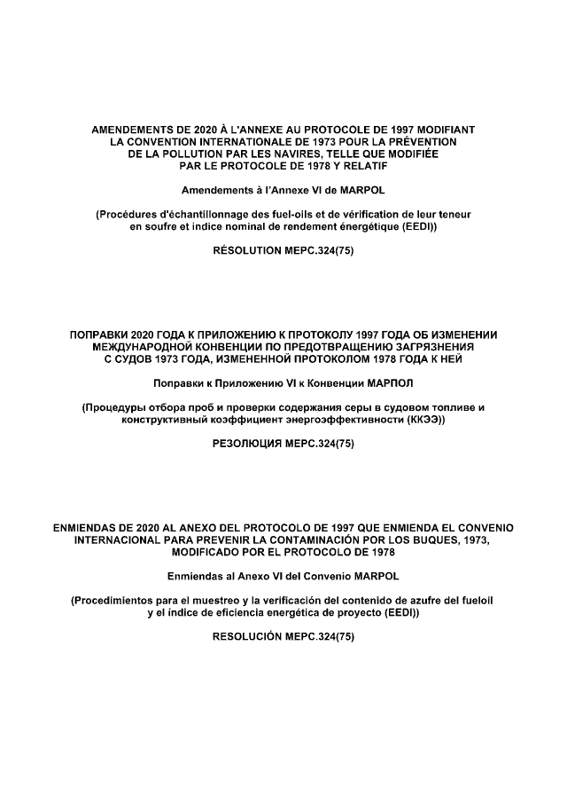 Поправки 2020 года к Приложению к Протоколу 1997 года об изменении Международной конвенции по предотвращению загрязнения с судов 1973 года, измененной Протоколом 1978 года к ней