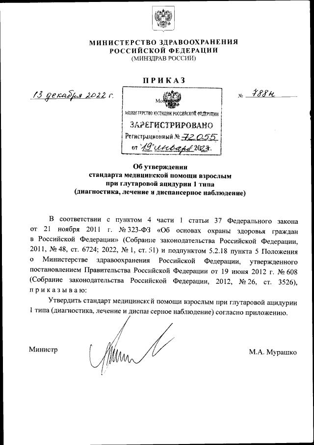 Приказ Министерства здравоохранения Российской Федерации от 13.12.2022 № 788н
